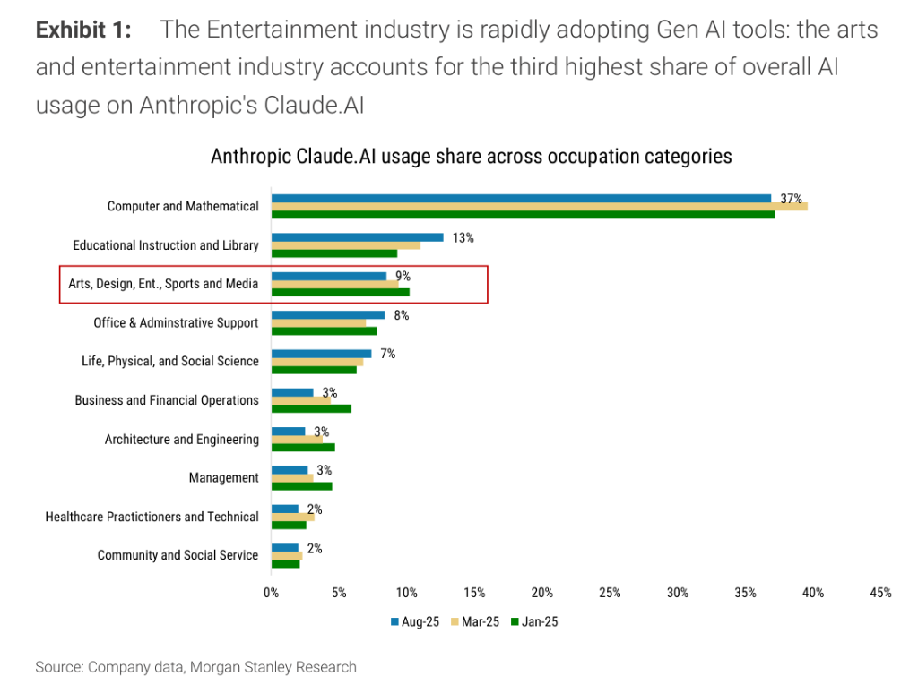 在AI导致数字内容极大丰富的时代,那些无法被轻易复制和生成的资产反而愈发珍贵。摩根士丹利认为,现场“体验式”资产和全球性“体育”资产的价值正在因此凸显。